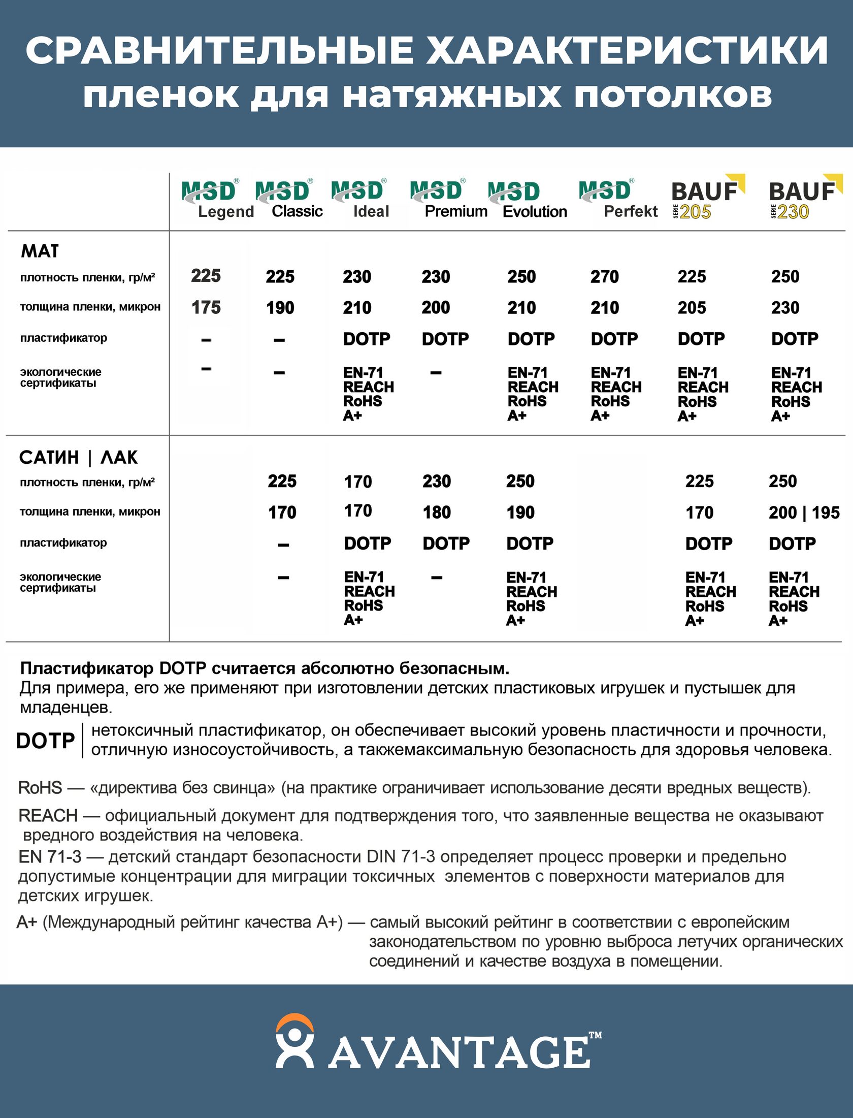 Сравнительные характеристики пленок для натяжных потолков