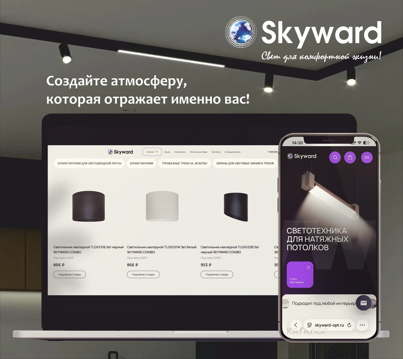 Мы рады сообщить, что наш сайт светотехники для натяжных потолков открыт и ждёт вас — skyward-opt.ru